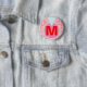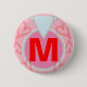 Pretty light pink background with red musical notes formed into shapes of hearts. Personalise with your monogrammed initial in red text in centre of platinum coloured faceted blue diamond ring. Fun button pin for any age. Nice romantic or sweetheart gift. Original Design © TamiraZDesigns