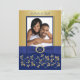 Monogram Blue, Gold Floral Photo Wedding Invite