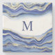 Monogram Blue Gold White Glitter Agate Geode Gift Stone Coaster