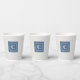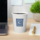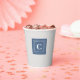 Light blue denim square print and double-framed white initial decorate this set of platinum background paper cups. Easily change the initial using the Template provided. Dimensions are 3.75"h x 3"d, The cup is 8oz capacity and ideal for cold and warm beverages. Add a lid for a small charge (I think it is worth getting lids). I take mine to convention, very nice quality. See "About This Product" at side for additional information. Printed in USA.