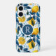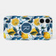 Monogram Blue Mediterranean Style Lemon Pattern iPhone 16 Case