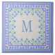 Monogram Blue Periwinkles Floral Border Faux Linen Tile