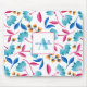 Monogram Blue & Pink Painted Floral Pattern Name Mouse Pad