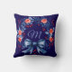 Custom Monogram Blue Red Rose Christmas accent pillow.
