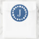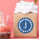 Blue with White Monogrammed Letter Initial encircled by polka dots. Keep the J Monogram or change to your own.