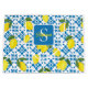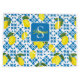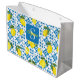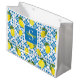 Monogram Blue Tile French Country Lemon Pattern Large Gift Bag
