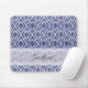 Monogram Blue Tribal Print Ikat Diamond Pattern Mouse Pad