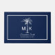 Add your own special touch to this simply elegant design featuring your monogram, family name or phrase and established date in white text and palm tree framed in a white border over a navy blue background.