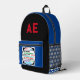 Monogram Blue White Polka Dots Motivational Printed Backpack