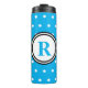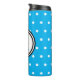Stylish monogrammed initial inside black white circle centre of tumblers. White polka dots on pretty bright blue background. Personalise with your initial. Fresh trendy geometric circles on tumblers for your own unique style. Visit my store for matching accessories. Original artwork designs © TamiraZDesigns.