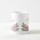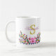 Monogram Boho Foliage Hibiscus Mug. Boho mug with floral / foliage monogram. Whimsical сolorful branch with purple, blue, pink, golden, green leaves and pink hibiscus flowers. Golden monogram + purple name. A great personalised gift.
