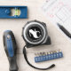 Monogrammed retractable tape with bold, thick and thin, overlapping initials. Personalise the design with your initials and use the design tool to nudge the letters into the best position for a neat, interlocking look. Simple, stylish, minimalist design for tradesman or contractor.