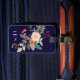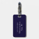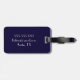 A colourful spray of graphic botanical flowers decorate this luggage tag and it can be personalised with three monogram initials and your contact information on the back. The background is a rich navy blue.