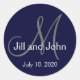 Navy Blue, White and Grey Monogram, Bride and Groom, Date Wedding Favour Sticker by Elke Clarke ©.