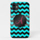 Monogram bright aqua and black chevrons Case-Mate iPhone case