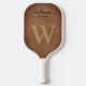 Monogram Brown Leather Script Name Rustic Pickleball Paddle