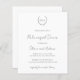 Traditional and classic black and white budget rehearsal dinner invitation featuring a wedding crest with your monogram inside of a wreath along with accent words in a script / calligraphy. This simple yet elegant invitation is great for a formal rehearsal dinner.