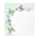 A pretty spray of sage green and purple butterflies form a decorative edge to this pad that has your initial in the top right corner.