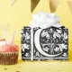Monogram C Initial Black and White Floral Pattern Wrapping Paper