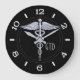 Monogram Caduceus Medical Symbol on Black Large Clock