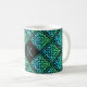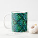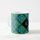 A monogram mug with a blue-green Celtic knot repeated diamond tile design against a black background. Personalise it with your initial!