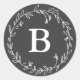 A simple hand-drawn white floral wreath on a chalkboard background. Easy - to - customise monogram for any occasion!