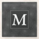 Monogram charcoal circles pattern glass coaster