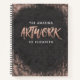 An elegant and glamourous personalised sketchbook, with your name and the words, the amazing artwork of ..." in a rose gold foil brush script font. Background has vintage rustic lace pattern in black and pink. Customise the sketchbook with the name of your choice to make someone feel extra special. Makes a fun gift for birthdays or for Christmas. Designed for you by Blackberry Boulevard.