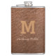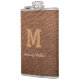 Monogram Chic Brown Leather Name Script Modern Hip Flask