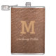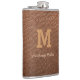 Modern, brown leather, script, monogram flask. Personalise it with your initial and name.