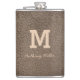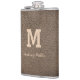 Monogram Chic Brown Leather Name Script Modern Hip Flask