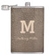 Modern, brown leather, script, monogram flask. Personalise it with your initial and name.