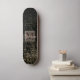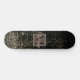 On this chic skateboard are gold shimmery confetti on a black backround for extra pop where in the middle is a brown square where you can customise it with a name and letter. Stylish glam vibes.