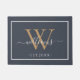 Monogram Chic Gold Script Names Wedding Dark Blue Doormat