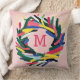 Monogram Christmas Bold Colourful Wreath Illustration Throw Pillow Holiday Home Decor