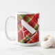 Christmas plaid in red, green, gold and black features your monogram initial in large white chic lettering on this unique coffee mug - perfect for yourself or give as a gift. *TIP: You may need to use the Edit tools to adjust the placement of your initial.