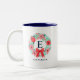 Monogram Christmas Red Bow Wreath Holiday Two-Tone Coffee Mug