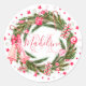 Christmas wreath sticker features monogram and name. Perfect for wrapped gifts or party favours.