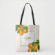 Monogram citrus oranges rustic watercolor stripes tote bag