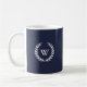 Monogram Classic Elegant Blue Mug. Classic white laurel wreath monogram on dark blue. Elegant and impressive.