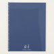 A navy blue planner, featuring a simple clean modern minimalist monogram with simple lower case serif typography initials. A punctuation mark (period) divides the first and last initial as a simple design element that defines this typography style as modern and clean. Your name in uppercase serif type. Simple, clean and modern.
