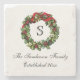 Monogram Classic Holly Wreath Custom Christmas Stone Coaster