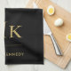 Monogram Classic Simple Elegant Black Gold Tea Towel