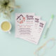 Modern monogram cleaning services business flyer features cleaning equipment inside house icon,monogram, name and title, services on the front on a bright cream background. Perfect for domestic and industrial cleaning services.
