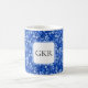 Monogram Cobalt Blue Flowers & Leaves Pattern 11oz Coffee Mug