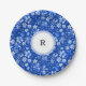 Monogram, Cobalt Blue Tropical Flowers Pattern 7" Paper Plate