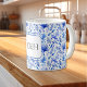 Cobalt blue on white watercolor tropical leaves pattern decorates this 11oz classic mug. Large capacity for hot or cold beverages. Easily change framed monogram initials using the Template provided. Also available in 15oz and many other mug styles. See "About This Product" at side for more information.