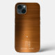 Monogram Copper Brown Brushed Metal iPhone 13 Case . Fully personalise this elegant copper brown faux brushed metal print iPhone 13 case with you monogram and name.