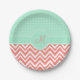 Monogram Coral Chevron with Mint Polka Dot Pattern Paper Plate