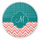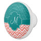 Monogram Coral Chevron with Teal Polka Dot Pattern Ceramic Knob